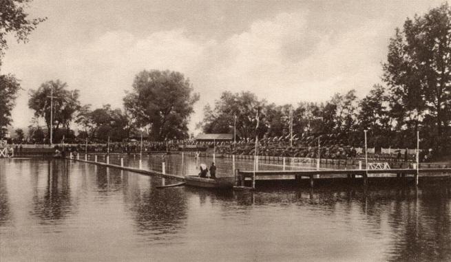 Bereitsseit 1909 war ein ehemaliger Ziegeleiteich, die Griesemannsche Badeanstalt zwischen Schöppensteg und Pettenkoferstraße, die sportliche Heimstatt des Hellas. Ab 1920 war der Verein Eigentümer des Geländes und baute das Bad zu einer wettkampftauglichen Sportstätte mit benachbarten Tennisplätzen für seine Tennisabteilung aus.